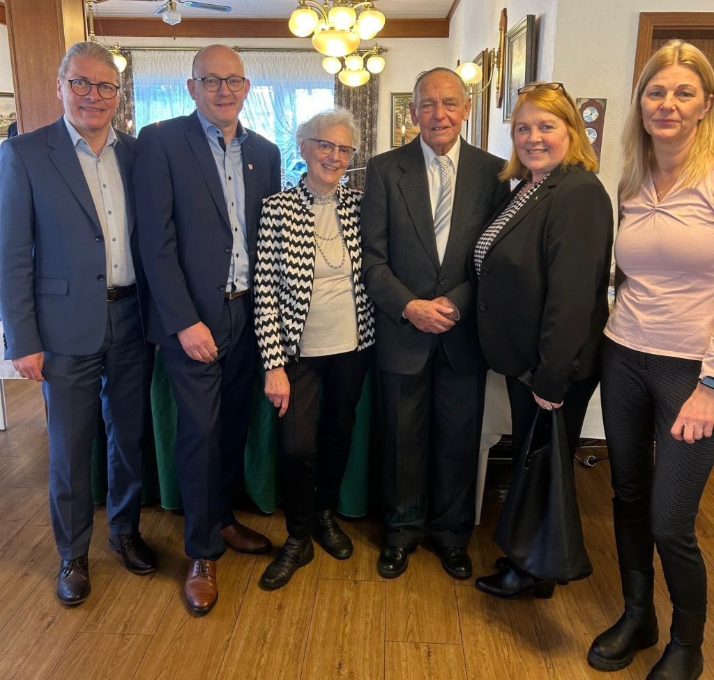 Bürgermeister Bernd Goffart gratuliert gemeinsam mit der ersten stellvertretenden Städteregionsrätin Marie-Theres Sobczyk, Ortsvorsteher Christoph Poschen und der Vertreterin des Ortskartells Nicole Karbig den Eheleuten Josef und Hildegard Büchel aus Einruhr sehr herzlich zur Diamantenen Hochzeit.