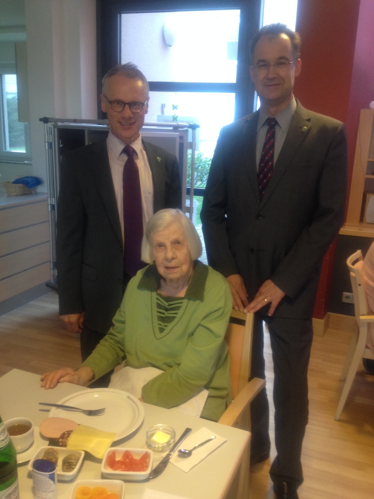 In Vertretung für Bürgermeister Karl-Heinz Hermanns gratuliert der 1. stellvertretende Bürgermeister Bernd Goffart gemeinsam mit dem stellvertretenden Städteregionsrat, Hans-Josef Hilsenbeck, sowie Ortsvorsteher Stefan Haas Frau Käthe Rahne aus Simmerath ganz herzlich zum 105. Geburtstag.